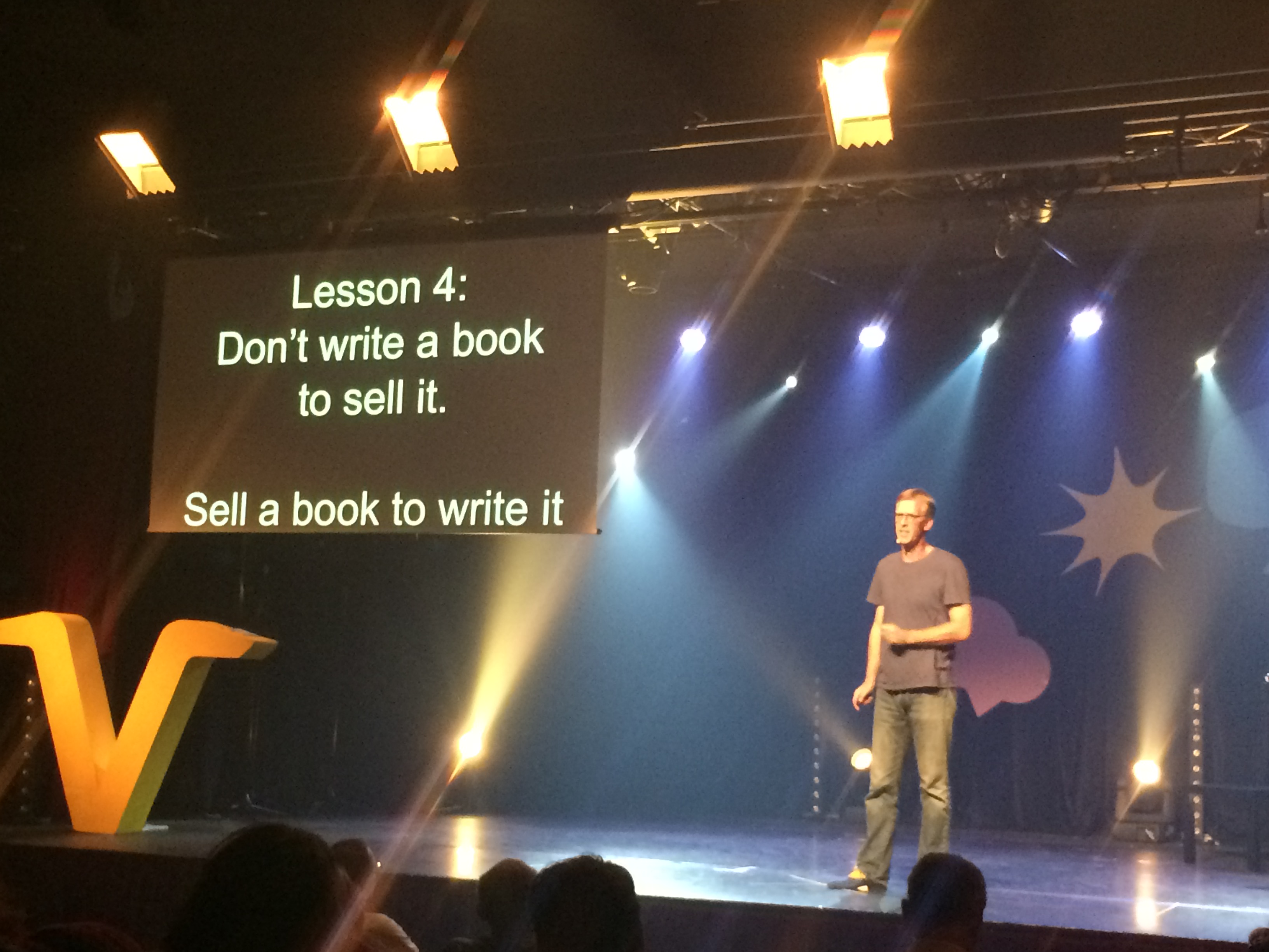 As my desire to hear Fredrik was one of the reasons I attended the conference, I would have been upset with the organizers if my intuition had not saved me and told me to go back in the room. Being aware and being present, I sat down and enjoyed the rest of his inspiring presentation full of unconventional advice (Don’t write a book to sell it, sell a book to write it) as well as stories that only happen to Frederick Haren, who seems well connected to the purple soul end of his rainbow (was it a surprise he was wearing a purple t-shirt?) as he makes the most improbable and colorful “soul” connections around the world.